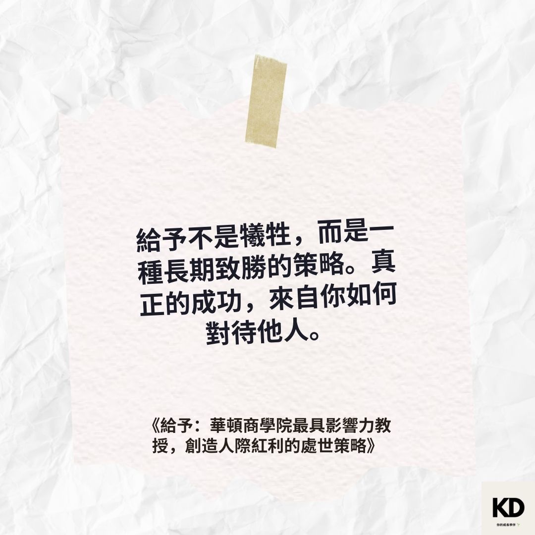 「給予不是犧牲,而是一種長期致勝的策略。真正的成功,來自你如何對待他人。」