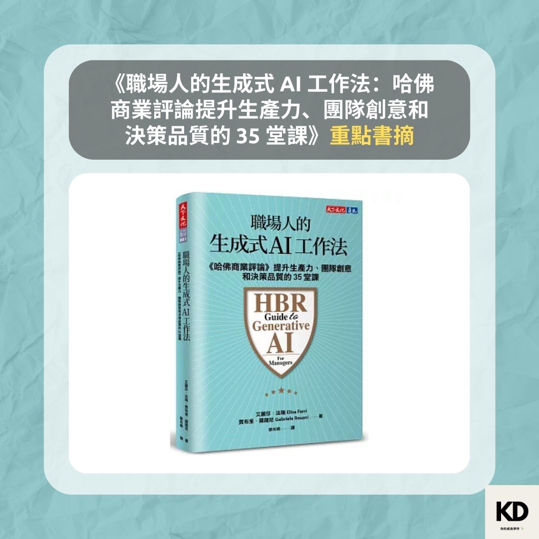 《職場人的生成式 AI 工作法:哈佛商業評論提升生產力、團隊創意和決策品質的 35 堂課》| 閱讀心得學習筆記