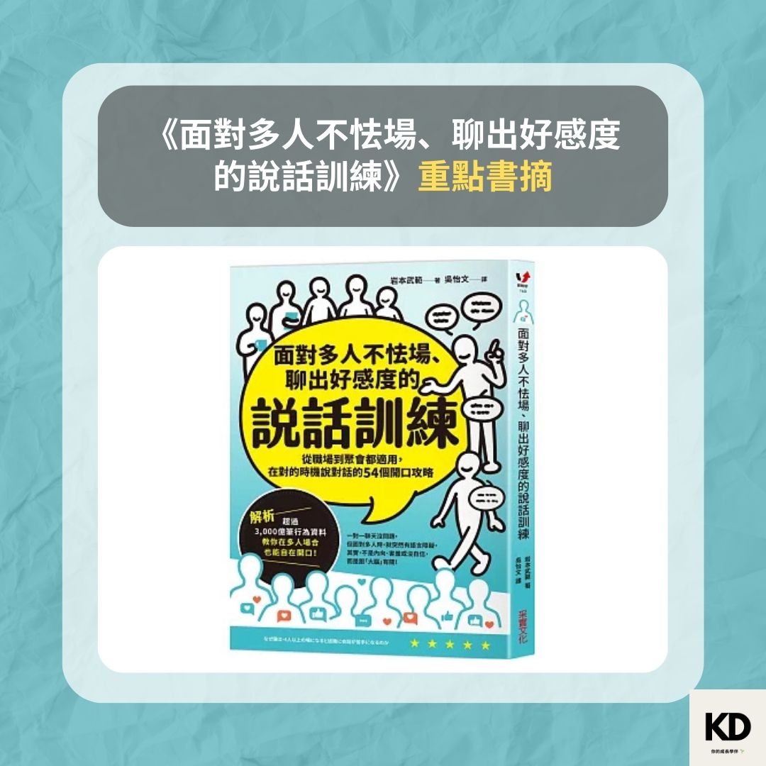 《面對多人不怯場、聊出好感度的說話訓練:從職場到聚會都適用,在對的時機說對話的 54 個開口攻略》| 閱讀心得學習筆記