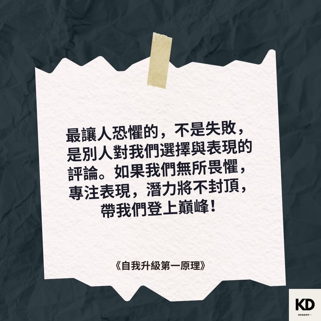 「最讓人恐懼的,不是失敗,是別人對我們選擇與表現的評論。如果我們無所畏懼,專注表現,潛力將不封頂,帶我們登上巔峰!」