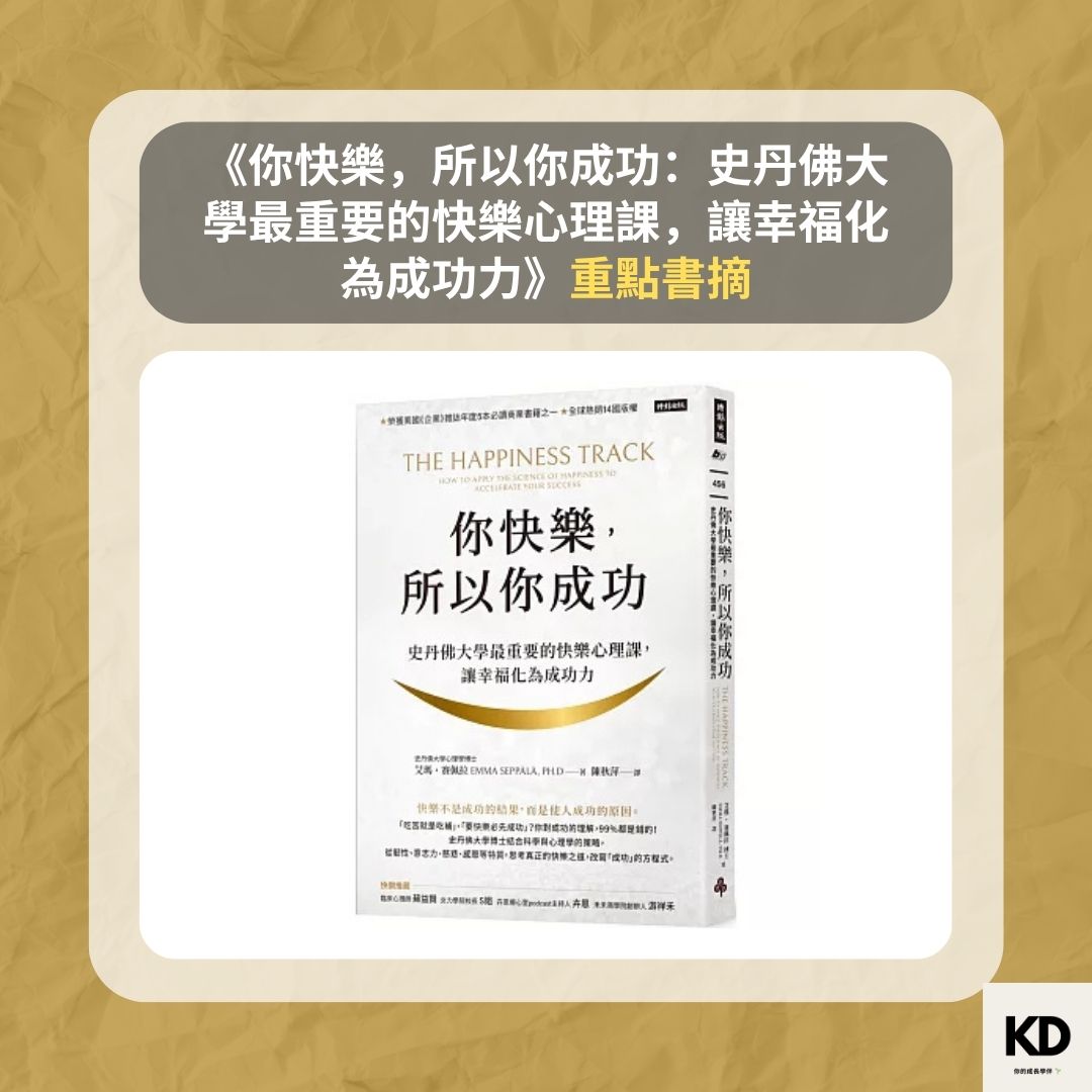 我們從小就被灌輸「成功後才能快樂」的觀念,但這其實本末倒置。《你快樂,所以你成功:史丹佛大學最重要的快樂心理課,讓幸福化為成功力》一書,以大量心理學與神經科學研究證明,快樂是驅動創意、生產力與成就的根本力量。作者艾瑪‧賽佩拉博士透過六大策略,教導我們如何透過內在轉變,打造幸福且持久的成功。