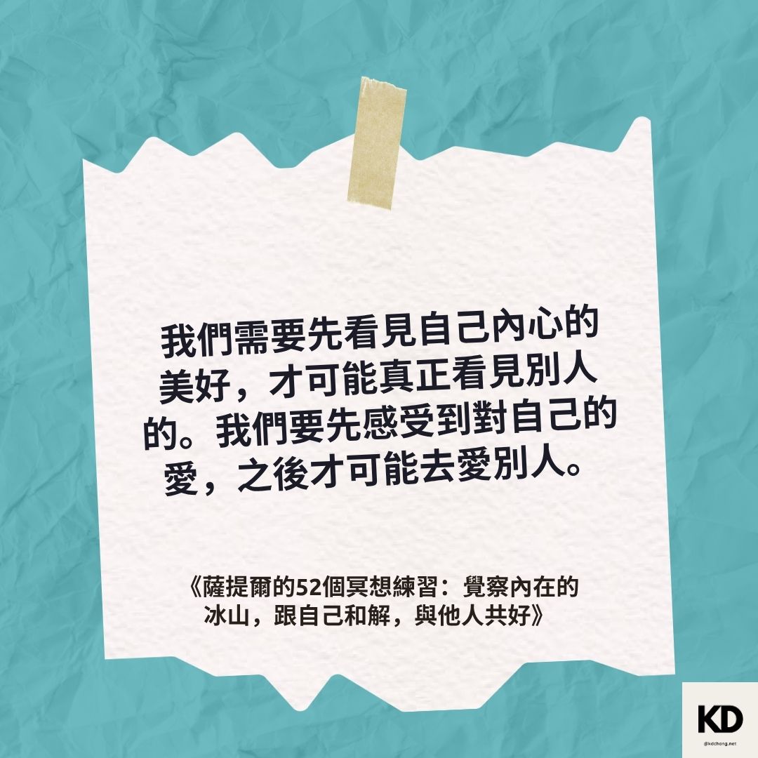「我們需要先看見自己內心的美好,才可能真正看見別人的。我們要先感受到對自己的愛,之後才可能去愛別人。」