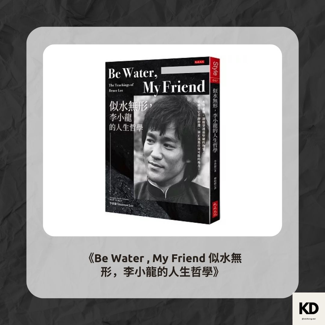 《Be Water , My Friend 似水無形,李小龍的人生哲學:水很柔弱,卻能穿透最堅硬的物質,你感覺它平靜停滯,卻正流進任何可能的地方。》由李小龍之女李香凝執筆,透過父親的人生哲學,傳遞「像水一樣」的智慧。本書不僅是武術指南,更是一種生活態度。面對壓力、挑戰與不確定性,我們能否如水般柔韌、靈活而不失力量?這是現代人值得深思的課題。