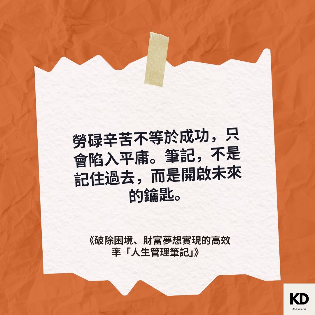「勞碌辛苦不等於成功,只會陷入平庸。筆記,不是記住過去,而是開啟未來的鑰匙。」