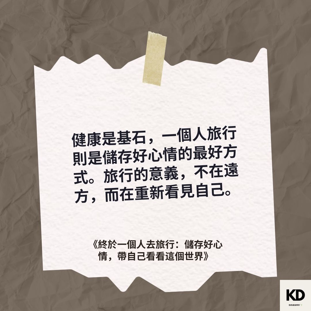 「健康是基石,一個人旅行則是儲存好心情的最好方式。旅行的意義,不在遠方,而在重新看見自己。」