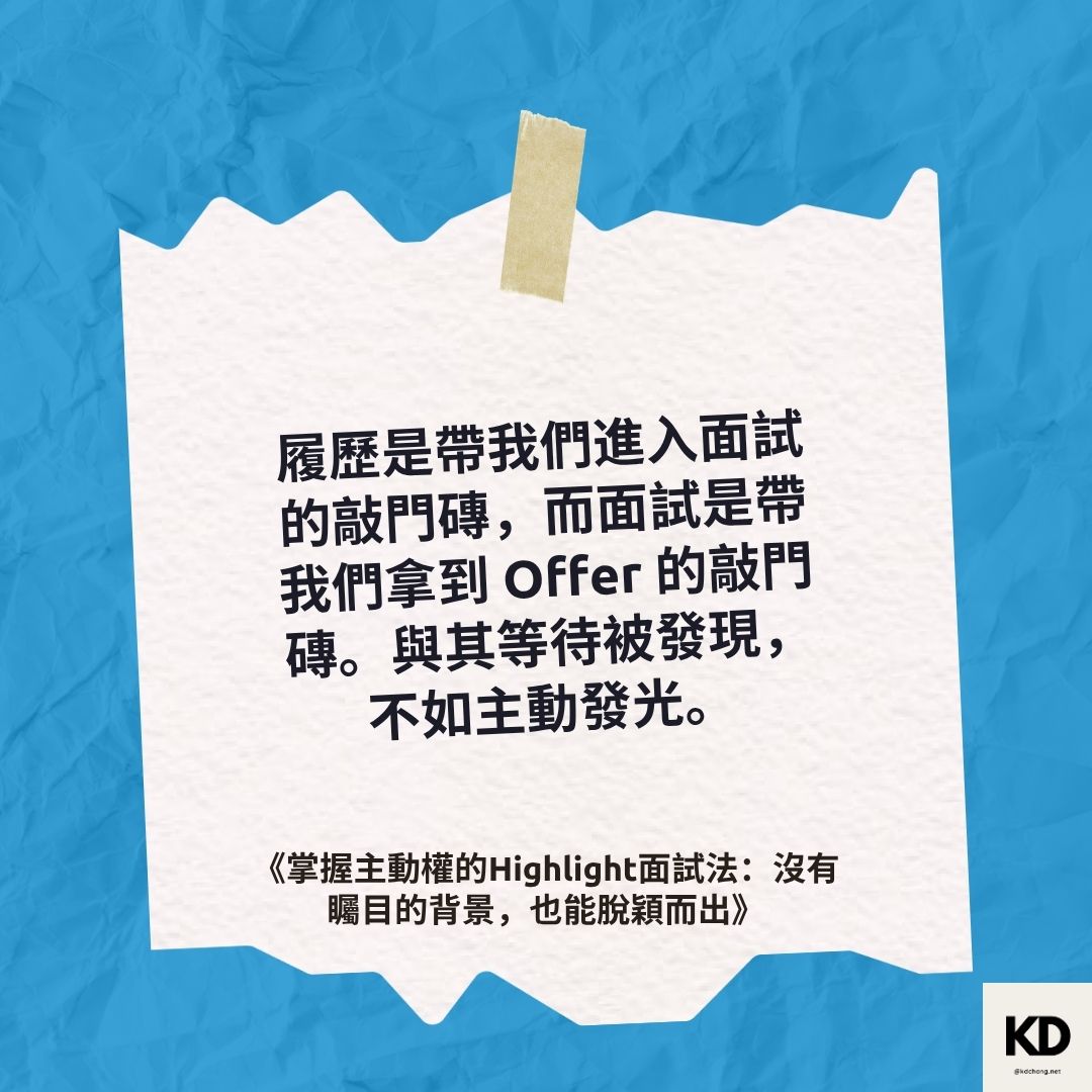 「履歷是帶我們進入面試的敲門磚,而面試是帶我們拿到 Offer 的敲門磚。與其等待被發現,不如主動發光。」