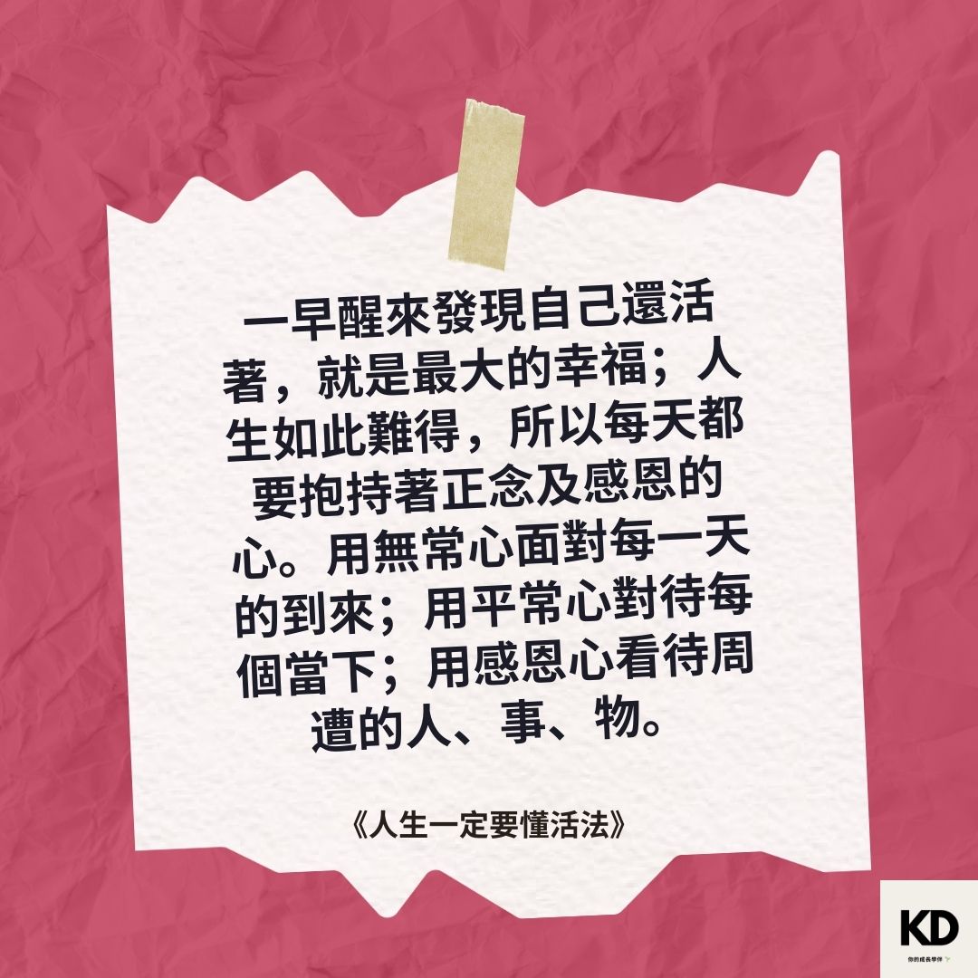 - 練習正念與感恩,在生活中隨時提醒自己保持覺知,並感謝身邊的人事物。