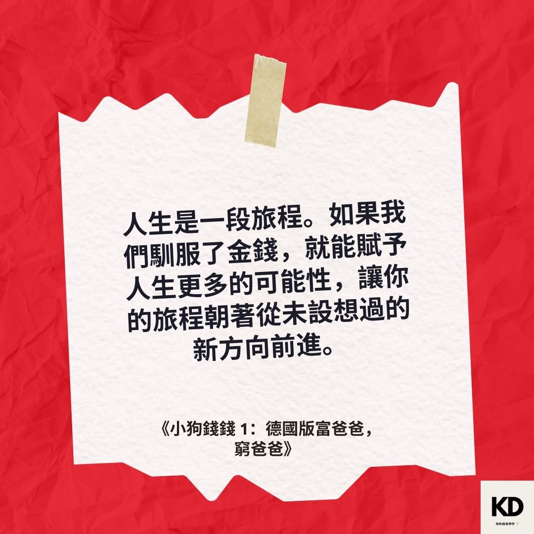 「人生是一段旅程。如果我們馴服了金錢,就能賦予人生更多的可能性,讓你的旅程朝著從未設想過的新方向前進。」