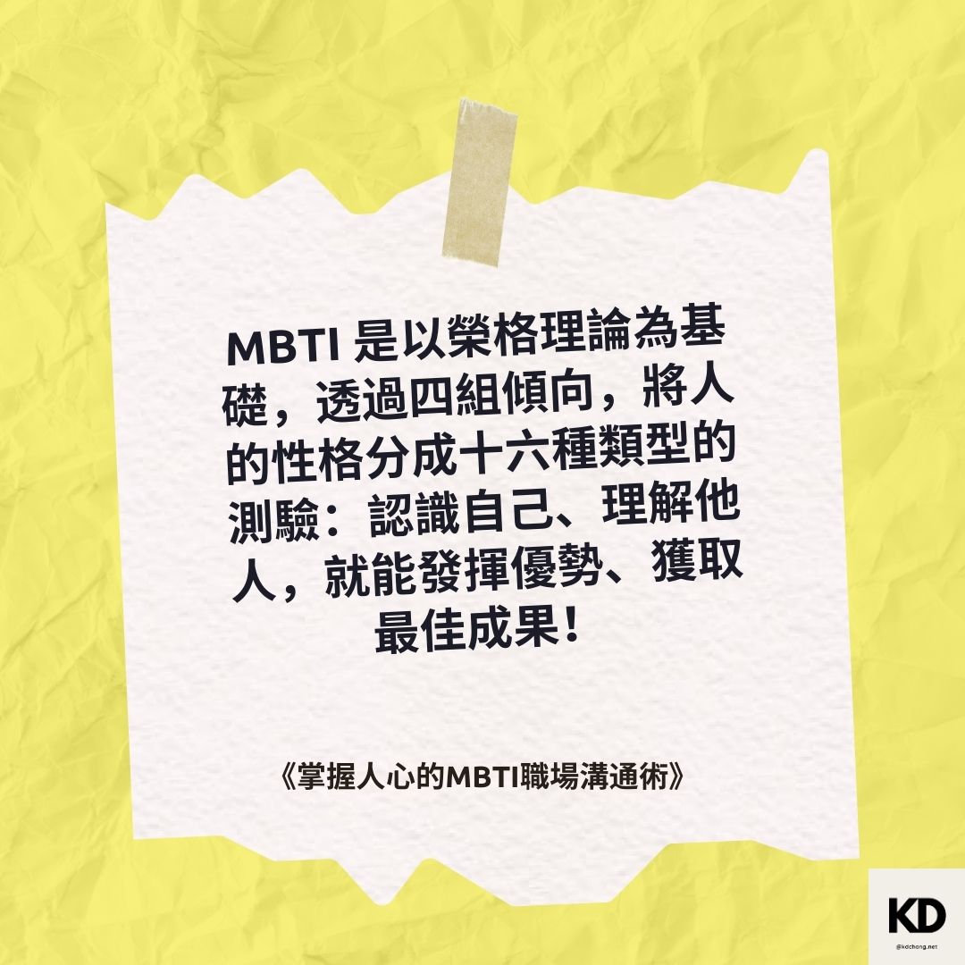 「MBTI 是以榮格理論為基礎,透過四組傾向,將人的性格分成十六種類型的測驗:認識自己、理解他人,就能發揮優勢、獲取最佳成果!」