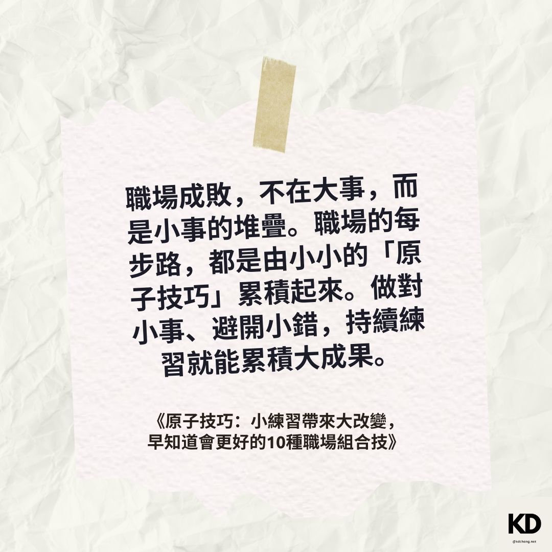 「職場成敗,不在大事,而是小事的堆疊。職場的每步路,都是由小小的「原子技巧」累積起來。做對小事、避開小錯,持續練習就能累積大成果。」