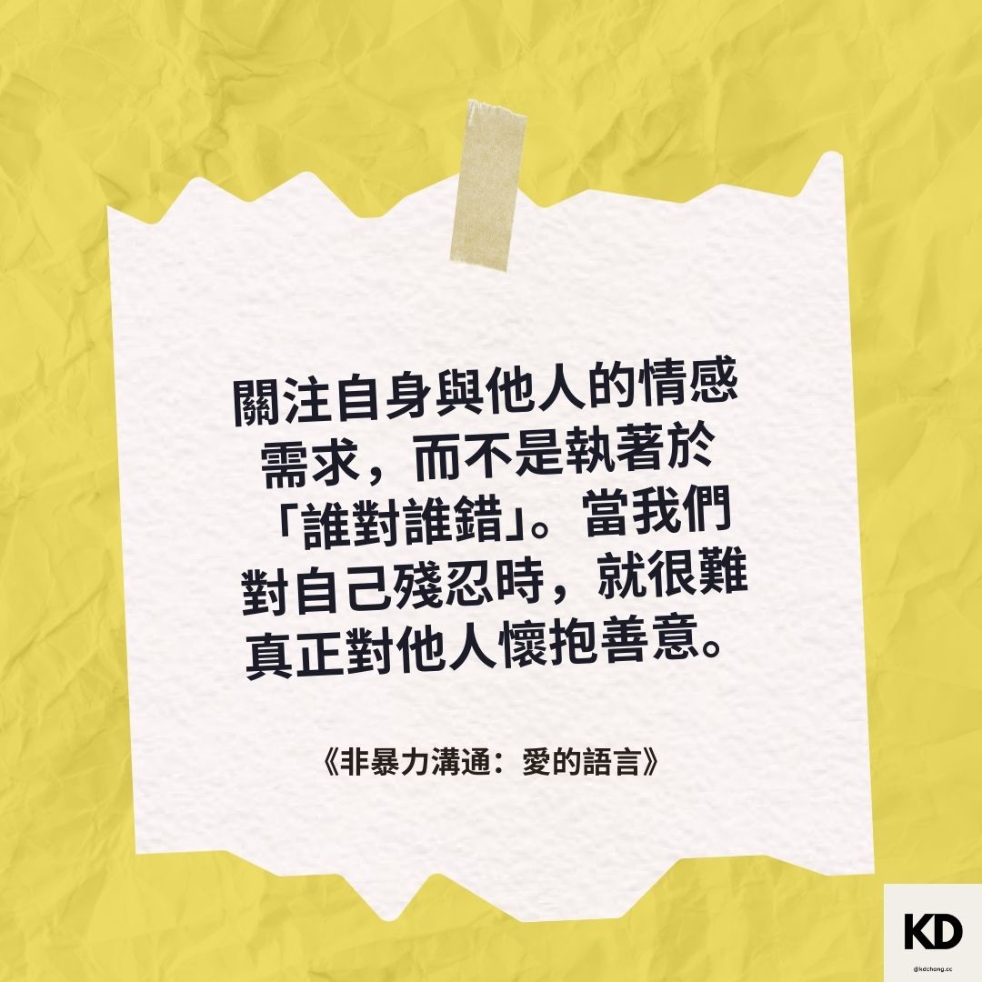 「關注自身與他人的情感需求,而不是執著於誰對誰錯。當我們對自己殘忍時,就很難真正對他人懷抱善意。」