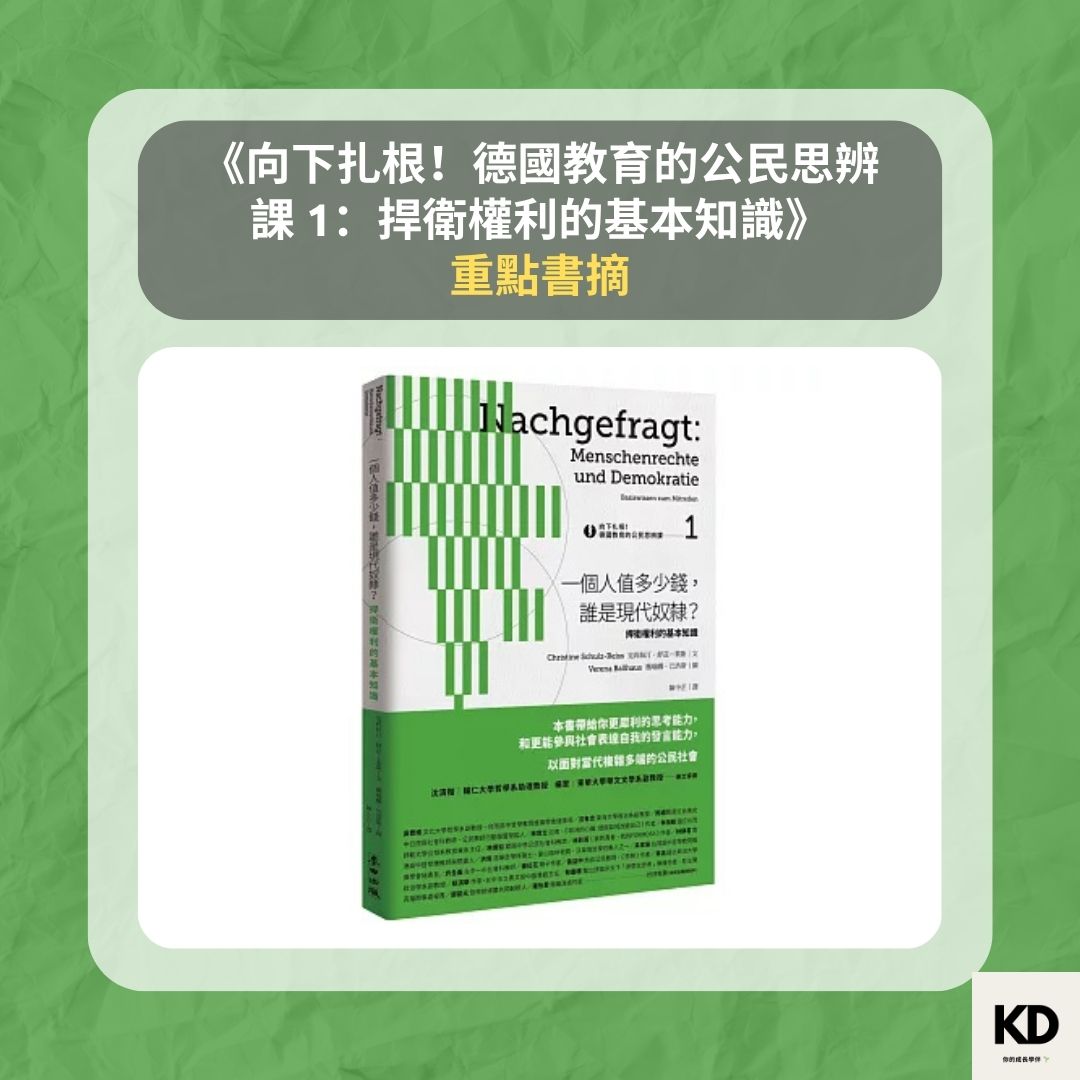 《向下扎根!德國教育的公民思辨課1─「一個人值多少錢,誰是現代奴隸?」:捍衛權利的基本知識》| 閱讀心得學習筆記