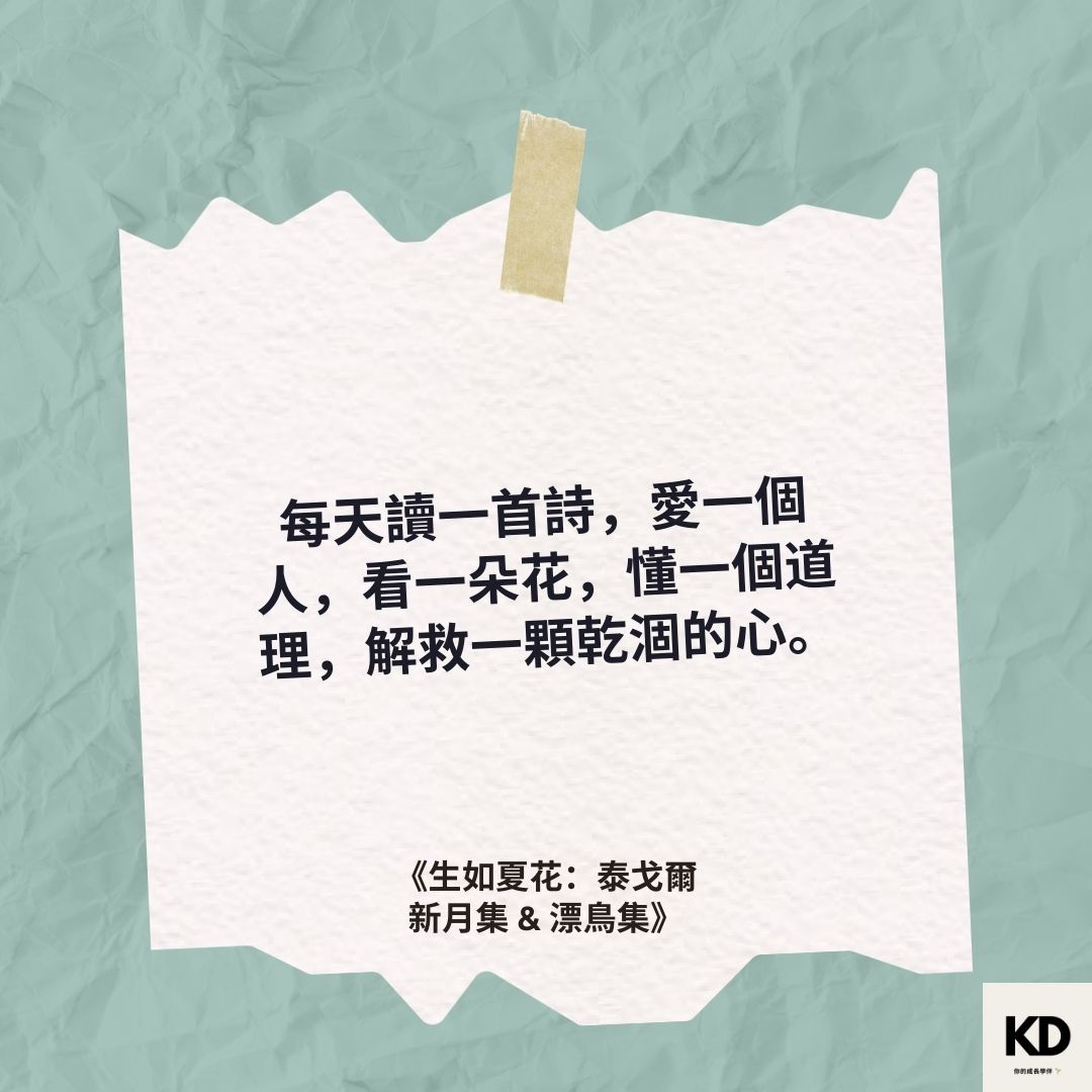 「每天讀一首詩,愛一個人,看一朵花,懂一個道理,解救一顆乾涸的心。」