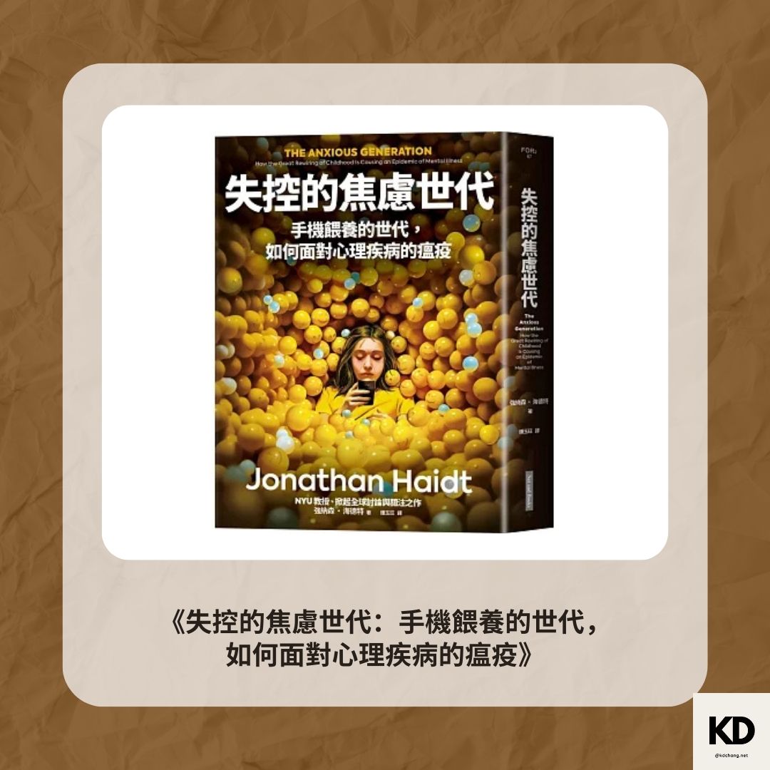在智慧型手機與社群媒體普及的時代,青少年的心理健康問題日益嚴重。《失控的焦慮世代》由社會心理學家海德特撰寫,探討Z世代如何因為手機與社群媒體的影響,經歷焦慮、憂鬱與社交障礙。本書不僅揭露問題根源,更提供政府、學校、企業與父母的可行對策,期望為下一代創造更健康的成長環境。