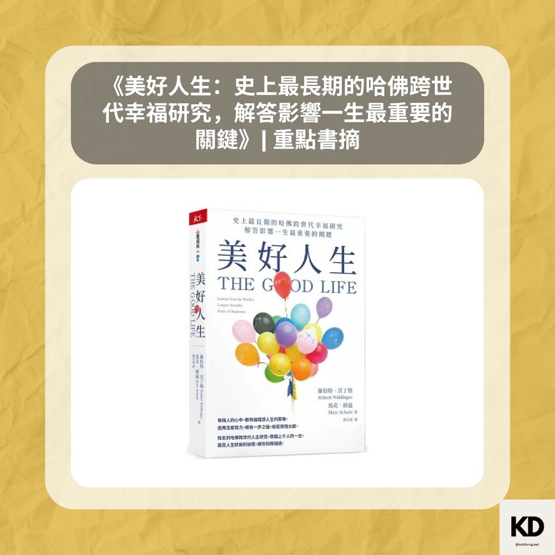 《美好人生:史上最長期的哈佛跨世代幸福研究,解答影響一生最重要的關鍵》| 閱讀心得學習筆記