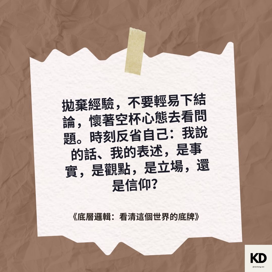 「拋棄經驗,不要輕易下結論,懷著空杯心態去看問題。時刻反省自己:我說的話、我的表述,是事實,是觀點,是立場,還是信仰?」