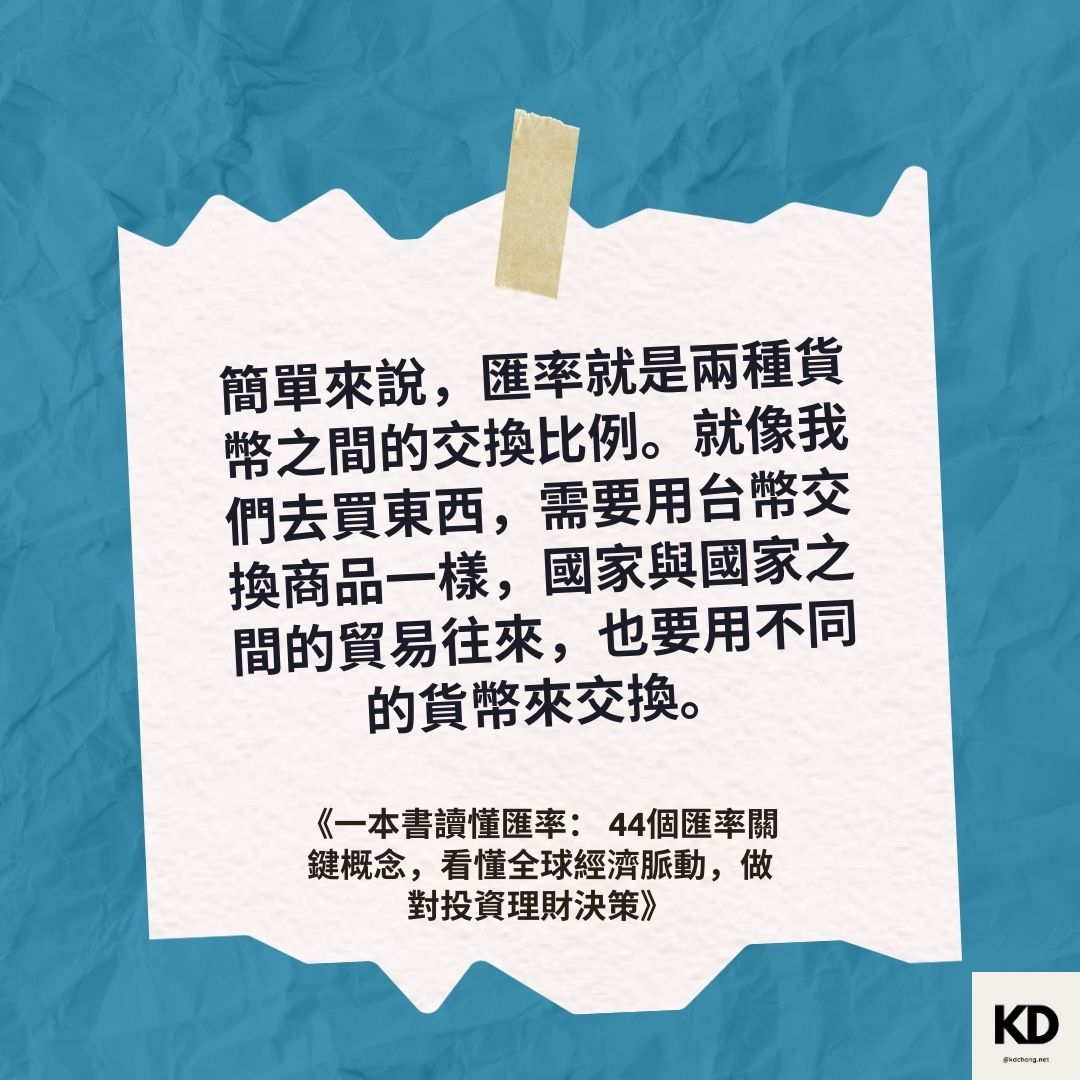 「簡單來說,匯率就是兩種貨幣之間的交換比例。就像我們去買東西,需要用台幣交換商品一樣,國家與國家之間的貿易往來,也要用不同的貨幣來交換。」