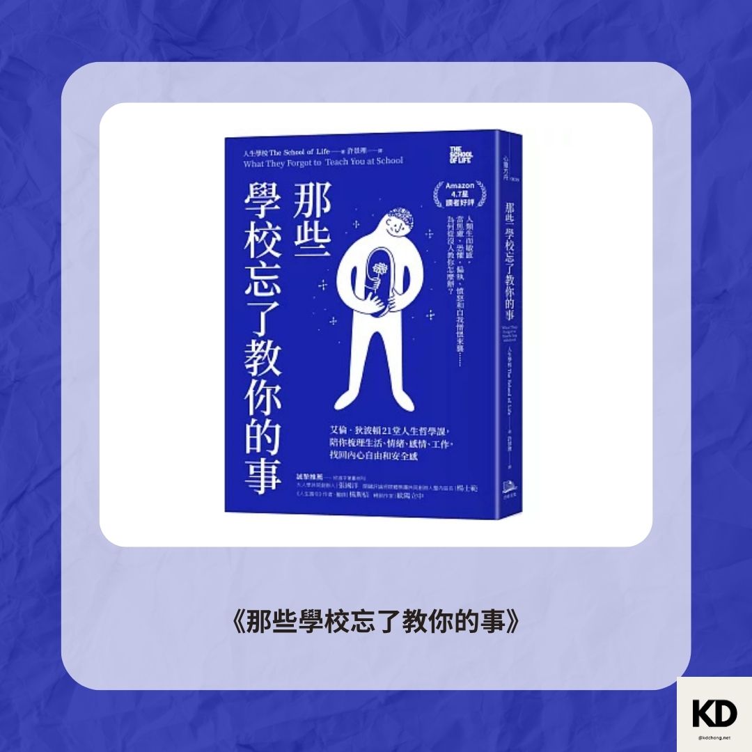 為何在接受二十年教育後,我們仍在情緒困境中掙扎?《人生學校》一書源於英國作家艾倫.狄波頓所創的同名課程,試圖彌補我們在成長過程中從未學會的情緒與人際智慧。透過 21 堂核心課題,書中引導我們重新面對自己內心的脆弱,學習修復、放下與自我慈悲,為混亂的情緒與關係提供具體對策。這不僅是一本哲學書,也是一本實用的情緒急救手冊。