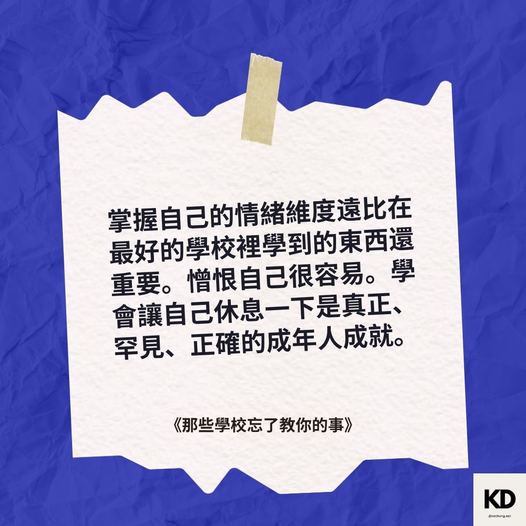 「掌握自己的情緒維度遠比在最好的學校裡學到的東西還重要。憎恨自己很容易。學會讓自己休息一下是真正、罕見、正確的成年人成就。」