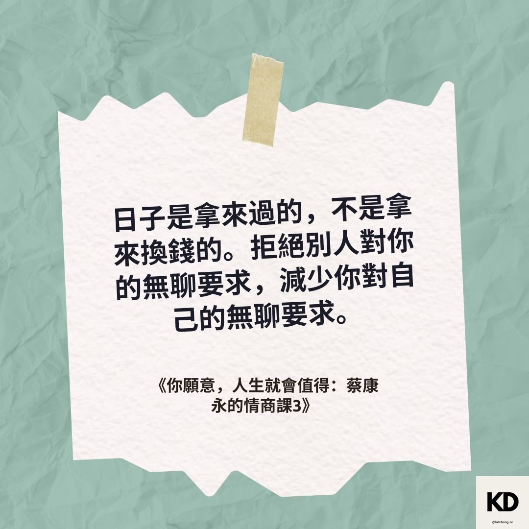 「日子是拿來過的,不是拿來換錢的。拒絕別人對你的無聊要求,減少你對自己的無聊要求。」